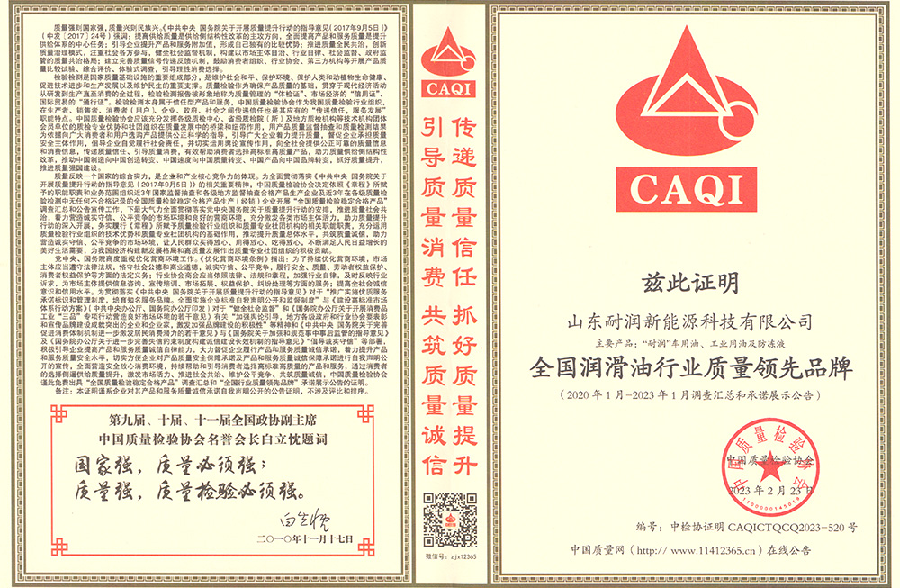 全國潤滑油行業質量領先品牌