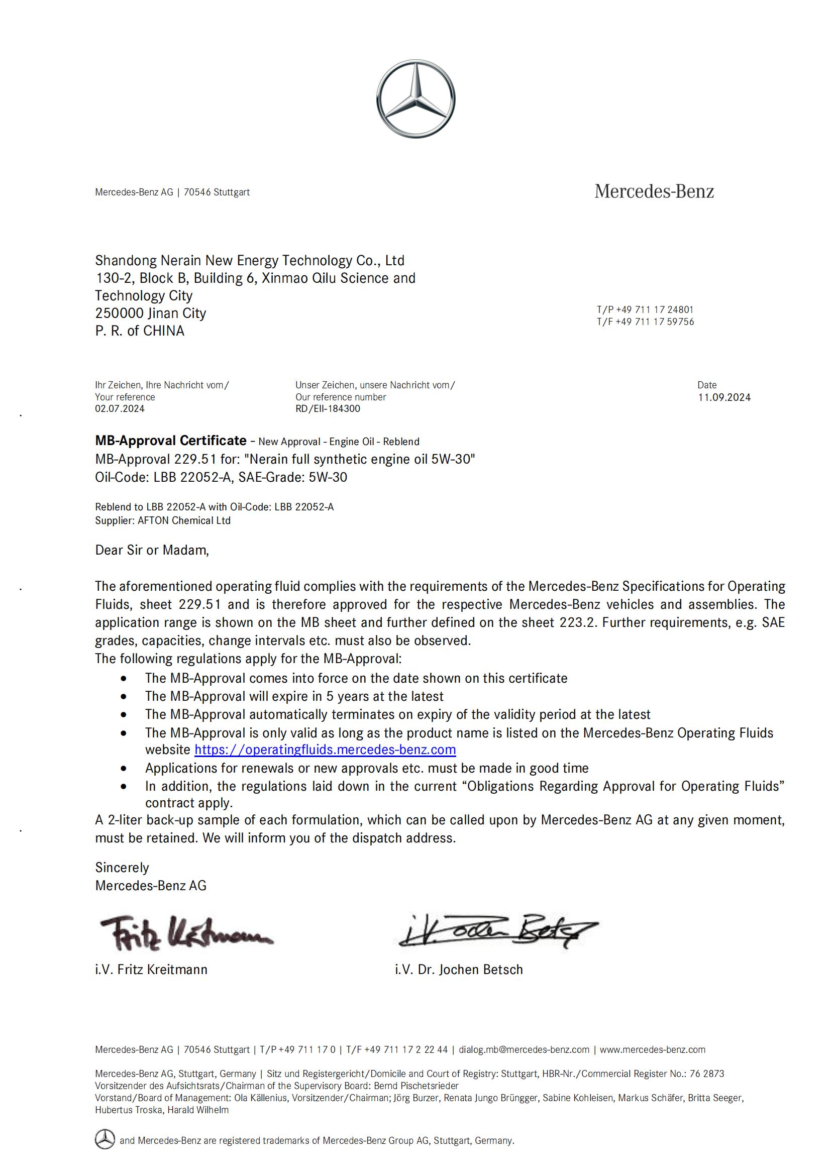 奔馳MB-229.51標準認證