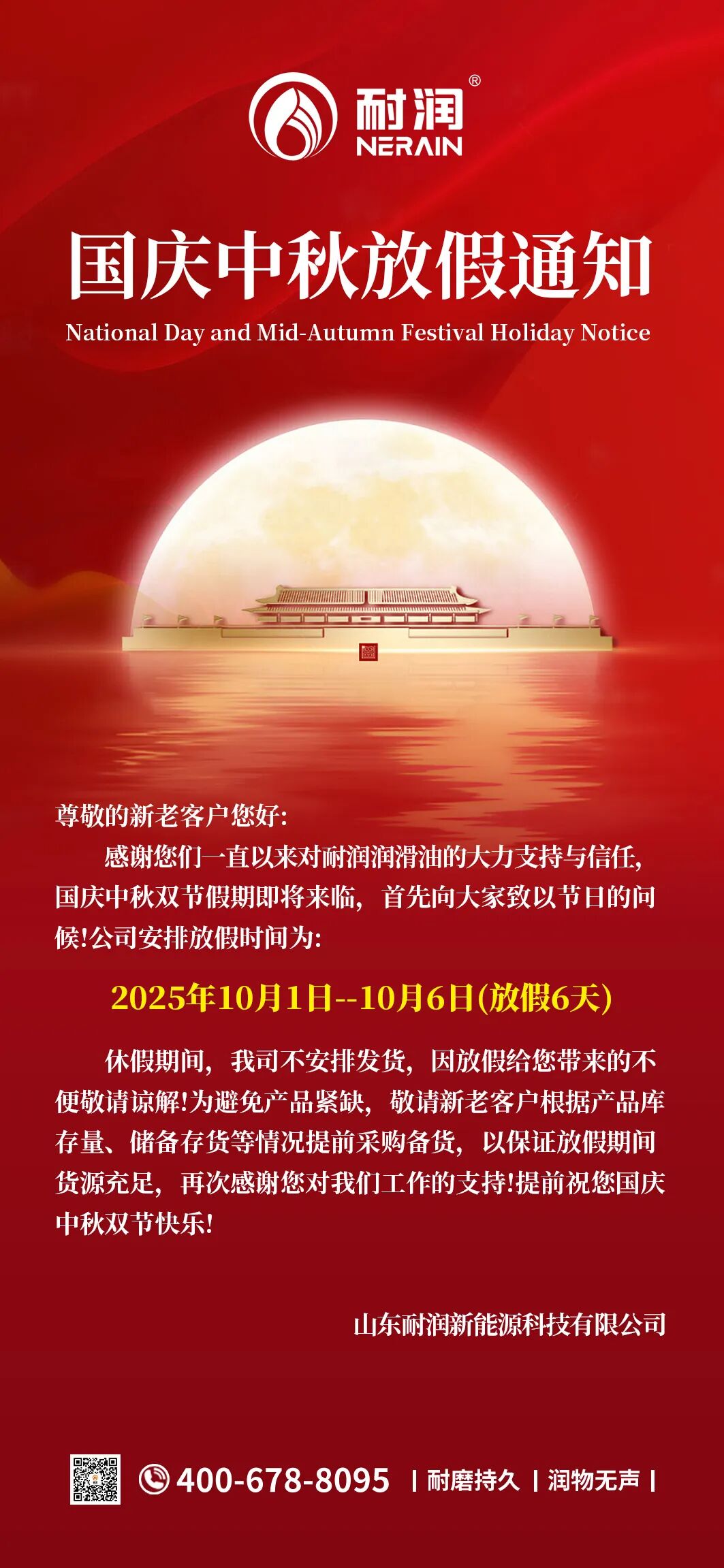雙節(jié)同慶 | 耐潤(rùn)潤(rùn)滑油2025國(guó)慶&中秋放假通知!